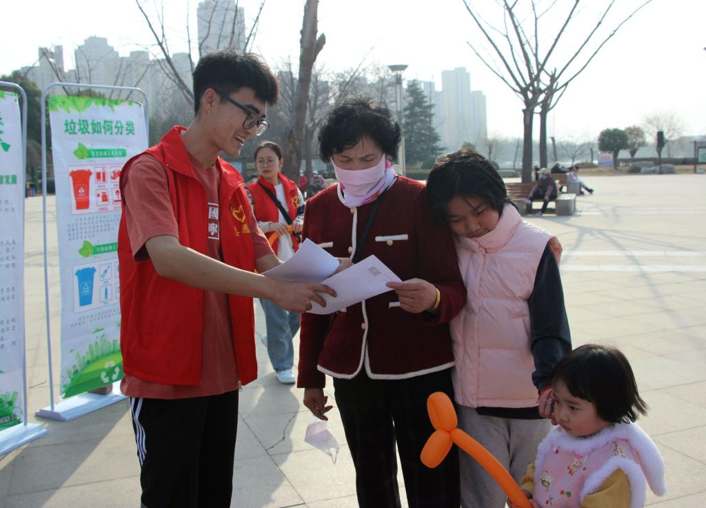 生命科学学院、旅游与资源环境学院、外国语学院等学院的志愿者团队选择了“文明城市创建”主题,开展了卫生大清洁活动。有的志愿者打扫公园地面、清理花坛内杂物、擦拭宣传栏等;有的拿起长钳,捡拾城市各个角落垃圾,并将捡到的垃圾进行分类装袋;还有的志愿者手拿宣传单页指着一个个垃圾物品讲解,让居民掌握分类小窍门,领会垃圾分类的重要性。