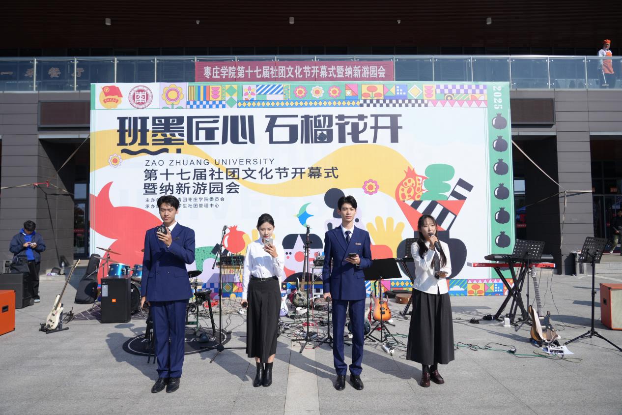 10月22日—23日,由校团委主办、校学生社团管理中心承办的第十七届社团文化节开幕式暨学生社团纳新游园会在薛城校区和市中校区同步进行。校党委书记高峰、党委副书记丰雷出席活动。全校84家社团集中亮相,通过三大特色区域联动展示,尽显青春风采与活力。