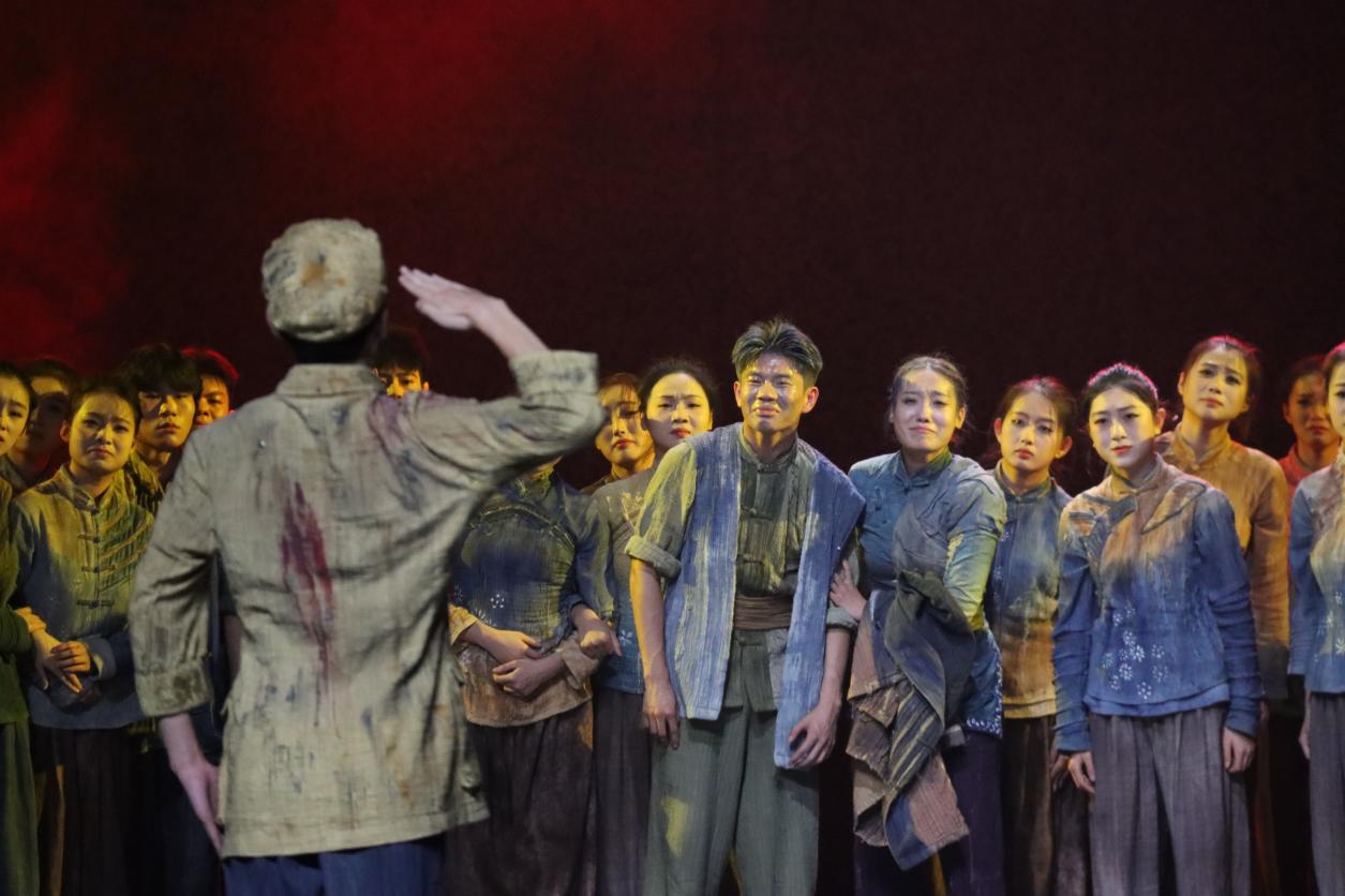 全剧精心设计序《风光》、四幕《风云》《风烟》《风涛》《风华》及尾声《长风》的完整结构,创新采用回旋曲式与“多线并进”的叙事手法,将“独轮车”、“纺车”等承载着厚重历史的革命文物转化为鲜明的舞台意象,让观众在肢体艺术的流转中,直观感受信仰的温度与情感的共鸣。演出中,灯光、舞美与多媒体影像的巧妙融合,既营造出战争年代的宏阔背景,又细腻勾勒出人物的情感世界,打造出沉浸式的观演空间,让红色文化的崇高感与震撼力直抵人心。