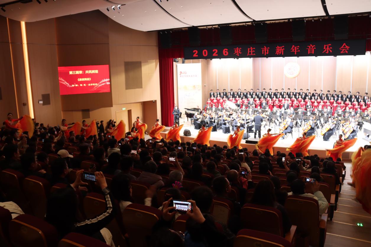 12月30日,2026枣庄市新年音乐会在我校青年音乐厅成功举办。山东省音乐家协会驻会副主席、秘书长武洪昌,市政协党组书记、主席张兵,市委常委、组织部部长李妍,校党委书记高峰,党委副书记、校长丛海林,市人大常委会副主任艾百灵,校党委副书记丰雷,校党委委员、副校长李目海、安涛,党委委员、纪委书记、监察专员武尚民,党委委员、副校长褚夫敏出席音乐会。