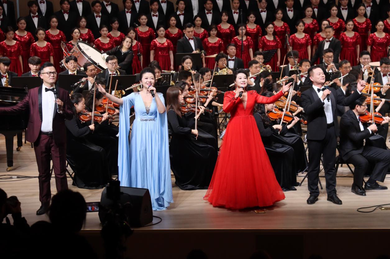 第三篇章“共筑辉煌”汇聚中外经典,传递奋进力量。《我的太阳》的高亢明亮的旋律、《匈牙利舞曲第五号》的异域风情、《饮酒歌》的轻快热烈,无不展现了音乐艺术的多元魅力。压轴上演的交响合唱《黄河大合唱》第七乐章《保卫黄河》,以磅礴气势再现中华民族无所畏惧的抗争气魄;《歌唱祖国》将现场气氛推向高潮,激昂的旋律中饱含着对祖国的热爱与对未来的憧憬。整场音乐会在《拉德茨基进行曲》的欢快旋律中落下帷幕。