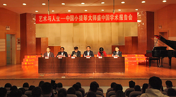 4月13日,应学校邀请,我国小提琴大师、中国小提琴学会会长盛中国先生在学校音乐厅举办了“艺术与人生--中国小提琴大师盛中国学术报告会”。校长李东,副校长李进京,市中区委宣传部部长王忆青,枣庄市音乐家协会主席邓冠东,中国小提琴学会副秘书长、枣庄市小提琴学会会长刘建国出席报告会。