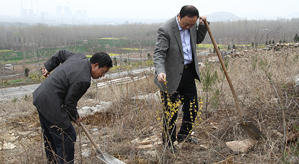 3月22日上午,校长曹胜强、副校长明清河带领各党总支书记与相关部门的同志一道再次来到DB中国旗舰官方网站植树点参加义务植树活动。