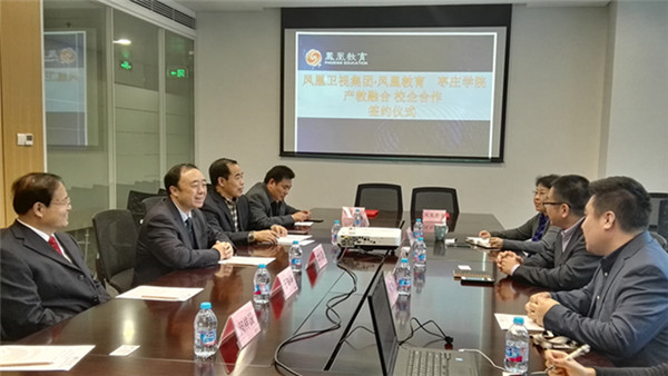 12月7日上午,我校与凤凰卫视集团·凤凰教育产教融合校企合作签约仪式在北京凤凰国际传媒中心举行。校长曹胜强、副校长李进京、凤凰教育总裁吴炜强、凤凰教育行政副总裁吕资慧出席,相关部门和学院负责人参加签约仪式。