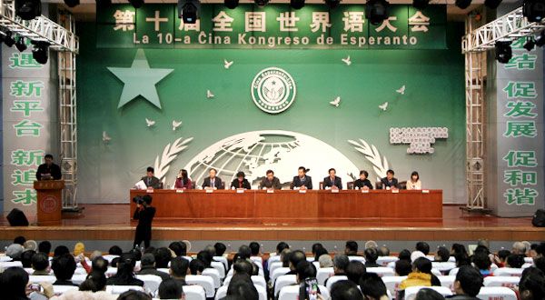 11月17日上午,第十届全国世界语大会闭幕式在我校综合楼报告厅举行。中华全国世界语协会会长陈昊苏,第一副会长、中国外文局常务副局长郭晓勇,副会长、《中国报道》杂志社社长兼总编陈实,全国世界语协会监事长谭秀珠,常务理事、《中国报道》杂志社副总编辑赵珺,国际世界语协会亚洲委员会主席、中华全国世界语协会副秘书长王瑞祥,校领导胡小林、曹胜强、曾宪明出席闭幕式。常务理事、《中国报道》杂志社副总编辑赵珺主持了闭幕式。