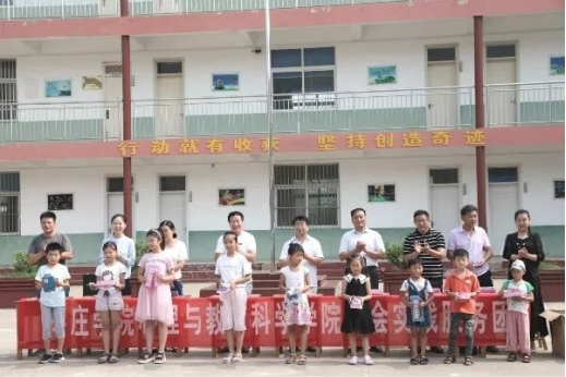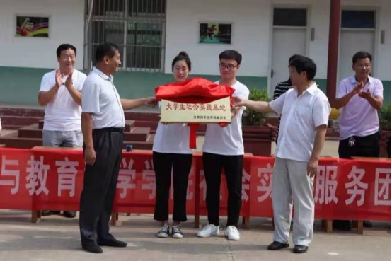 7月15日,心理与教育科学学院在山亭区凫城乡东凫山小学举行大学生志愿者暑期“三下乡”社会实践活动启动仪式暨大学生社会实践基地揭牌仪式。院党总支书记赵荣军、我校省派第一书记郭勇、凫城镇党委副书记史良好、凫城镇教委主任王善志、凫城镇东凫山村书记陆传扬出席活动,心理与教育科学学院团总支副书记、支教团指导教师及志愿者共二十余人参加本次活动,活动由东凫山小学校长王彬主持。