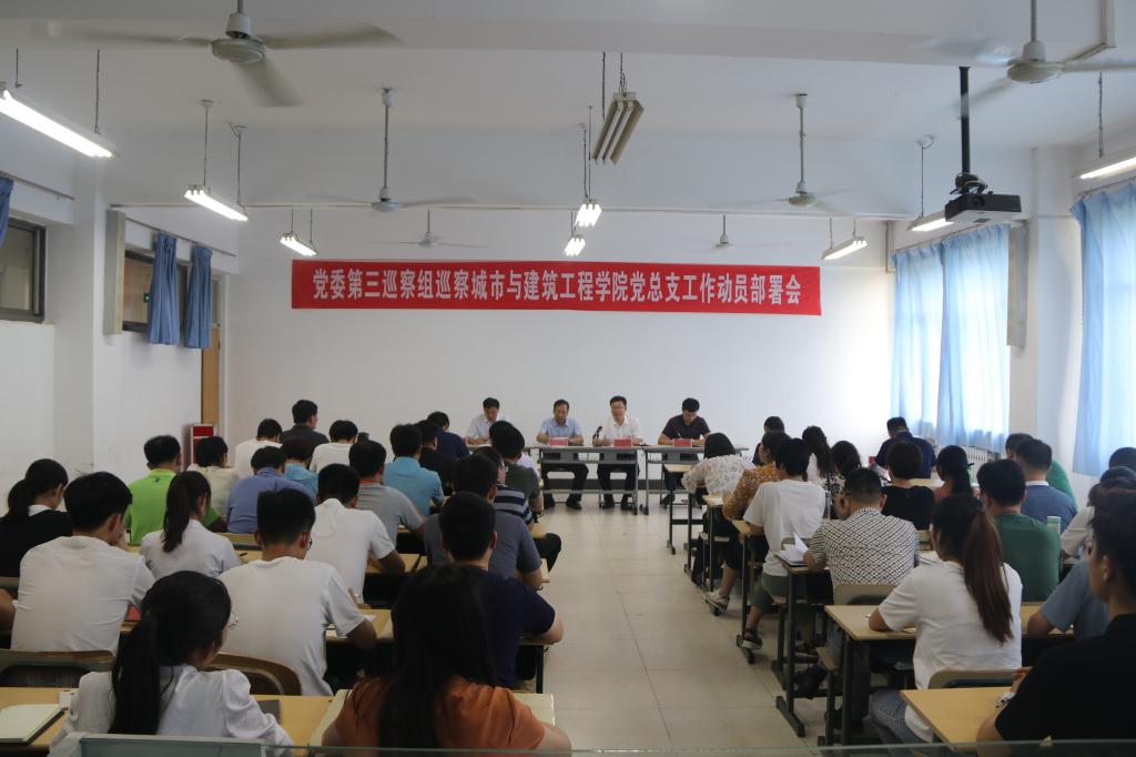 党委第三巡察组组长轩庆明同志代表巡察组对巡察城市与建筑工程学院党总支工作进行动员部署,提出要准确把握巡察工作的内容和方式,对执行党章和其他党内法规,遵守党的纪律,落实全面从严治党和党风廉政建设“两个责任”等情况进行巡察;城建学院党政班子和相关人员要积极配合巡察工作,认真准备相关档案材料,客观反映问题。校党委巡察工作领导小组副组长田素安同志强调要深刻领会此次巡察工作的意义,严肃巡察工作纪律,正确履行巡察职责,推动校内巡察工作顺利开展。