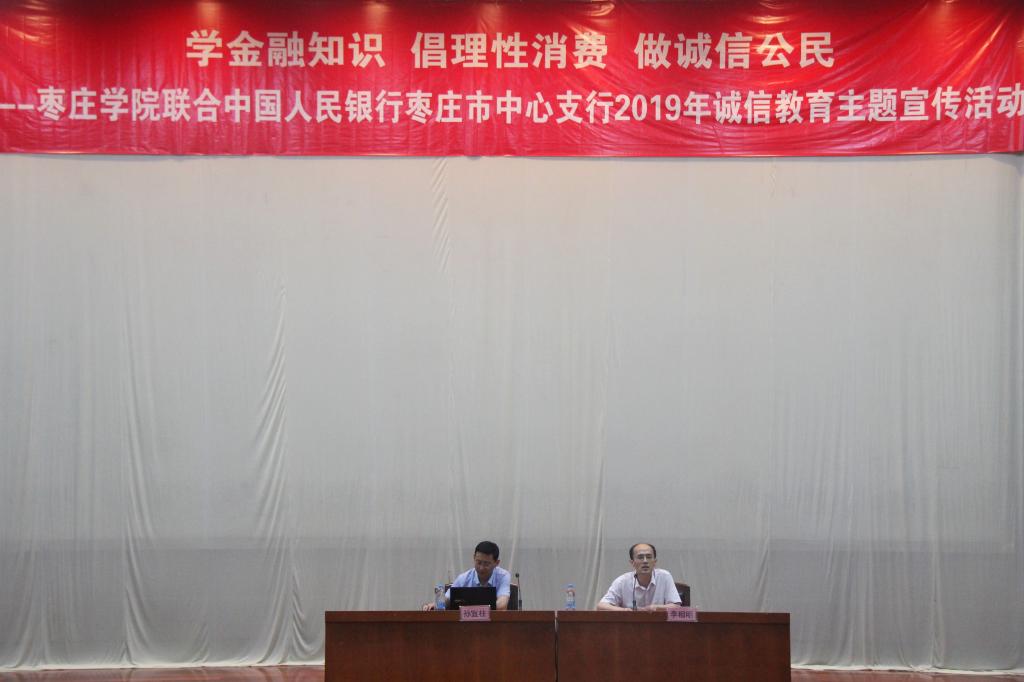 为深入贯彻落实习近平总书记关于教育的重要论述和全国教育大会精神,落实立德树人根本任务,大力增强青年学生的诚信意识、责任意识,倡导理性消费、合理消费,远离“校园贷”的不法侵害,6月12日下午,学生工作处资助管理中心联合中国人民银行枣庄市中心支行在综合楼一楼报告厅举办了“学金融知识,倡理性消费,做诚信公民”的主题讲座,各学院负责资助工作的老师、获得国家助学贷款和国家助学金的学生代表共460余人聆听了讲座。讲座由学生处副处长李相明主持。
