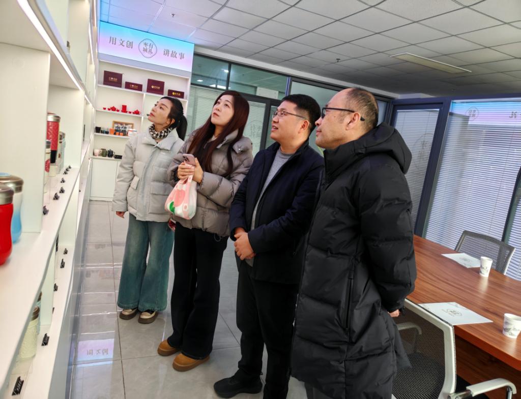 活动中,企业负责人带领学院老师参观文创展示区,介绍了枣城有礼在红色文创开发、城市IP打造、伴手礼设计等方面的成果、规划及文创开发思路,直观感受本土文创产业活力与创新方向。座谈中,学院结合专业优势,与企业围绕文化资源转化、文创产品开发等方面深入探讨,双方在校企合作协同育人和实习就业等合作路径上形成广泛共识,明确文化赋能的产品开发方向,为深化校企合作、推动地方文化资源活化利用筑牢基础。