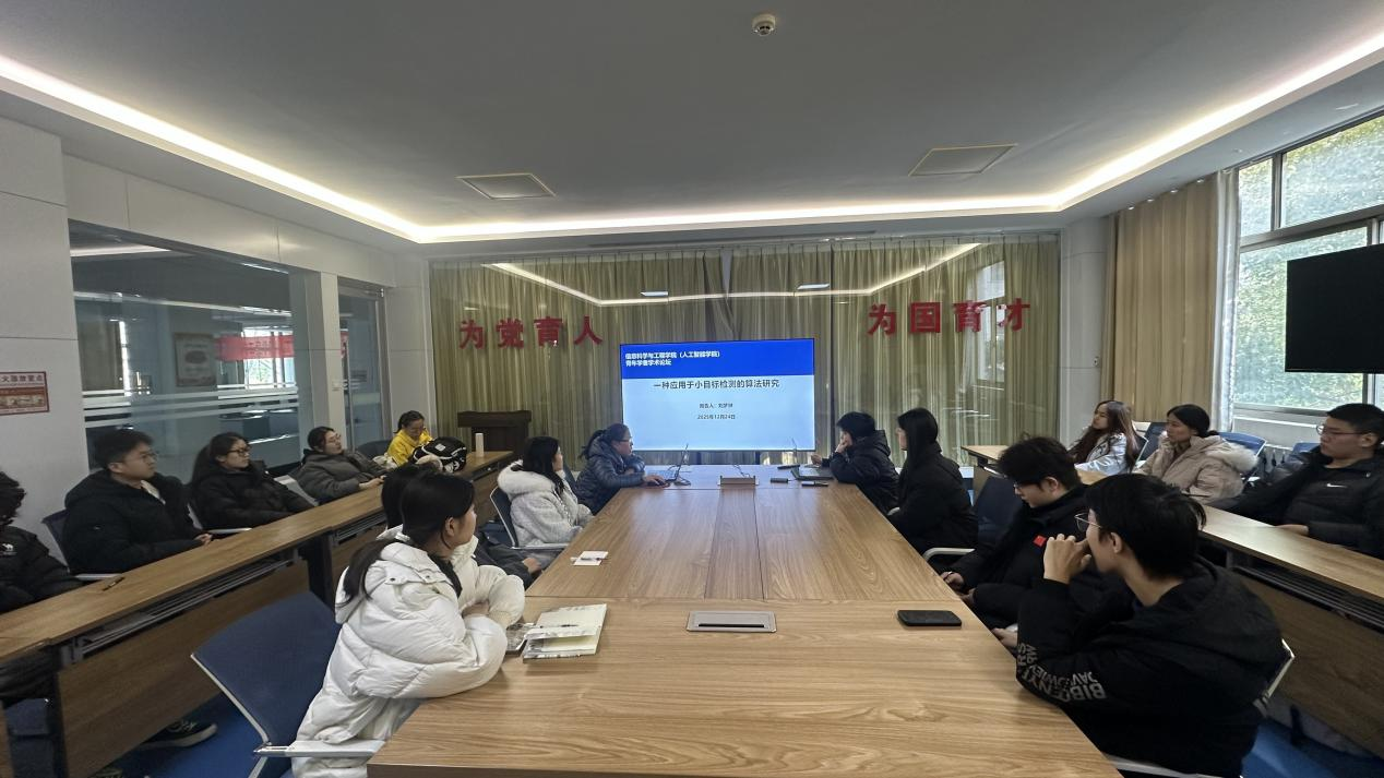 刘梦琳老师作了题为《一种应用于小目标检测的算法研究》的报告。报告针对小目标对象在检测过程中易出现严重的误检和漏检问题,提出了一种引入双线性插值法上采样操作和对YOLOV5算法在网络结构上进行改进的优化算法。该改进的YOLOV5算法在保证原模型较好检测速度的同时,对于小目标检测评价指标更优,检测各个类别的平均精度和平均精度均值提升明显。