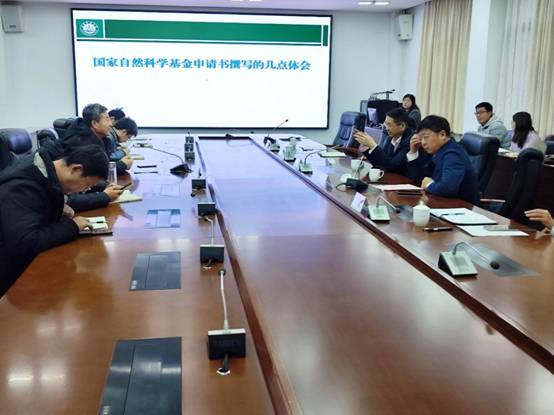 学术报告后,张教授又针对国家自然科学基金申请书的撰写问题作了题为《国家自然科学基金申请书撰写的几点体会》的专题辅导报告。张教授结合自己及其科研团队成员的申报经历,从基金的评审过程、评审专家关注的主要问题、科学问题的凝练以及申请书的写作要点等方面进行了详细讲解,并对教师提出的有关基金申报的代表性问题进行了细致解答。