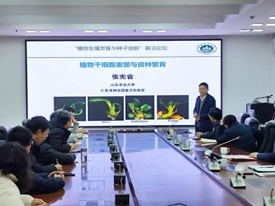 在报告会上,李目海对张宪省教授莅临“名师大讲堂”表示欢迎,并感谢张教授在百忙之中为师生作报告。随后,张教授作了题为“植物干细胞重塑与良种繁育”的学术报告。张教授通过大量实验数据和生动案例、围绕植物干细胞的形成及其重要性、干细胞的重塑机制以及植物干细胞重塑在良种繁育过程中的重要作用等问题,与参会师生分享了本人及其科研团队在植物干细胞重塑和良种繁育领域的多项原创性研究成果。