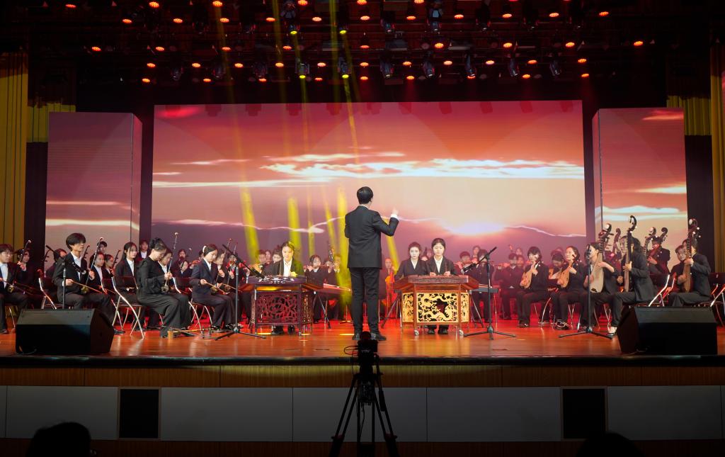 悠扬的琴声,如泉水流淌。瑰丽的乐曲,如画卷铺展。在304am永利集团官网大学生艺术团民乐团带来的民乐合奏《庆典序曲》中,晚会拉开帷幕。音乐编织的世界如梦幻般瑰丽,《薛城之歌》典雅优美,情真意切,引起现场观众的强烈共鸣;《我爱你中国》情感涌动,如潮水汹涌,表达出对祖国大地深深的眷恋;《幸福中国一起走》带着观众们在音乐中领略大好中国的壮丽景色,令人神驰梦往;《矿山爷们儿》展现出枣矿人积极向上的精神面貌和对美好生活的期待。
