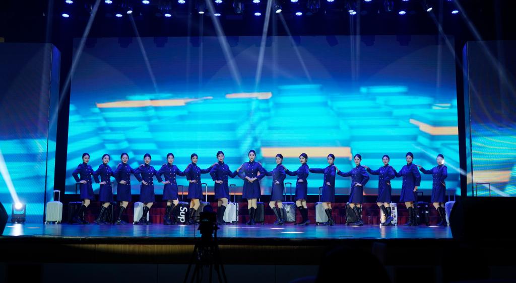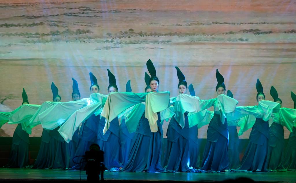 从现代的光辉,步入千年的非遗魅力,走秀《古薛新韵》将古薛的千年风华与现代创新完美融合,不仅展示了非物质文化遗产的魅力,还呈现出薛城深厚文化底蕴与创新精神的交汇;高歌奋进新时代,梨园绽放盛世花,京剧《唱支山歌给党听》用京剧的唱法和韵律对经典红歌进行重新展示,牢牢吸引了观众注意力,展现出经典力作历久弥新的风采。