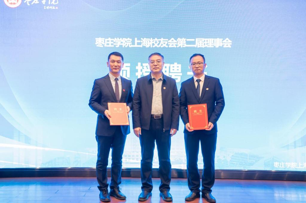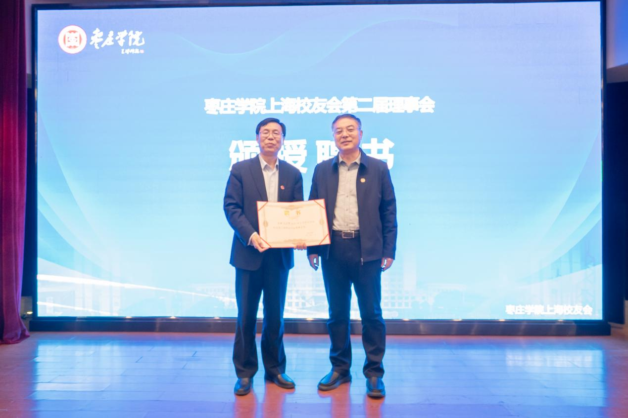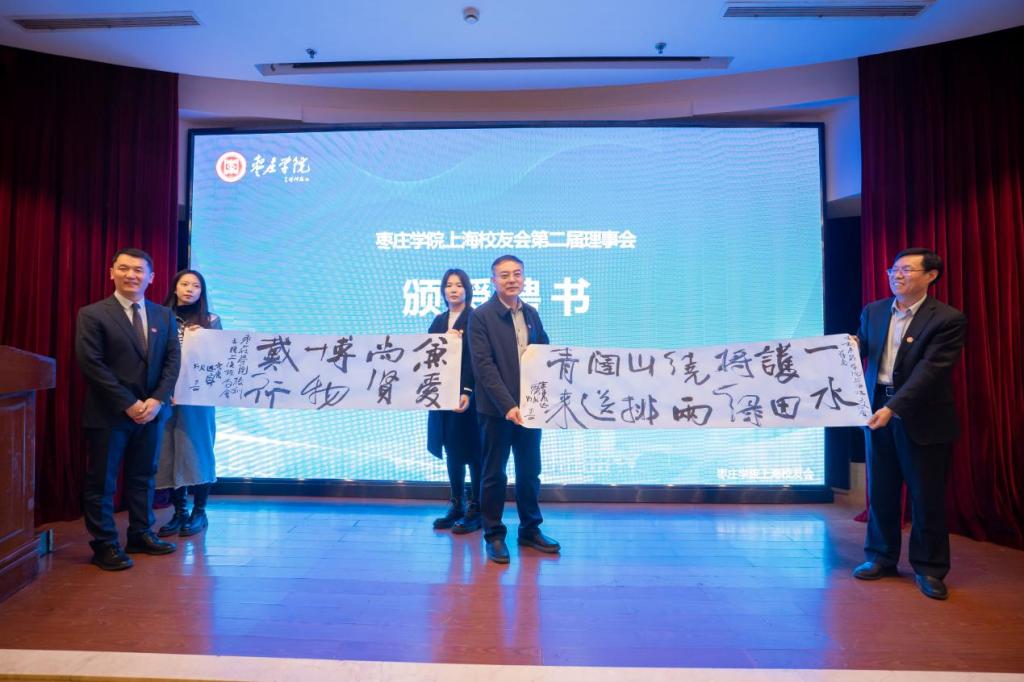 高峰为1980级校友、上海对外经贸大学学科建设办公室主任、研究生院院长刘永辉颁发名誉会长聘书,为1997级校友、上海菲锐教育信息咨询有限公司总经理蒋继刚颁发会长聘书,为第二届理事会其他成员颁发聘书,向上海校友会赠送了书法作品。