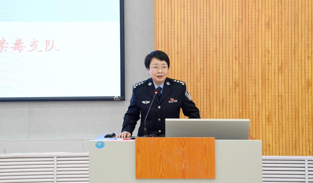 周涛做宣讲动员,禁毒支队副支队长王芳作“珍爱生命、远离毒品”专题报告。王芳从如何认识毒品、吸毒成瘾机制原理、常见毒品介绍、走近禁毒工作四个方面,通过PPT讲解、播放视频、现场互动等形式,结合国内外真实案例,教育引导在校师生掌握毒品知识,积极参与禁毒斗争,传递禁绝毒品正能量。在宣讲过程中,还发放了禁毒宣传资料,传播更多禁毒新知识。整场宣讲会组织有序,师生反响热烈。