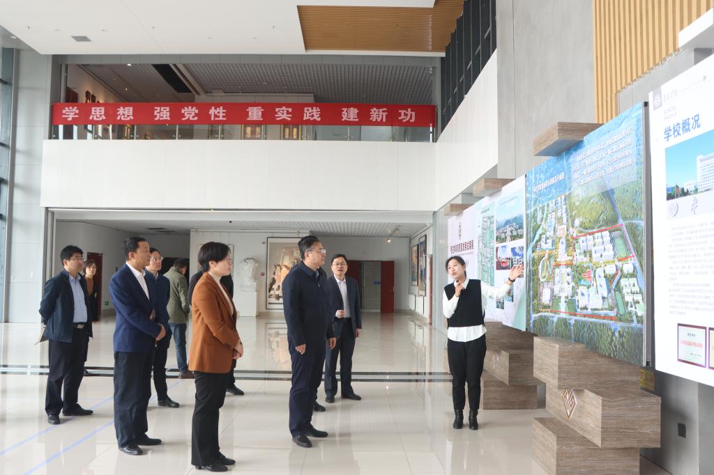 座谈会后,李妍一行先后参观了我校“时·空·塑”抽象雕塑展、卓越匠心文化艺术创作展、高质量发展成果展,并深入宿舍及莲花餐厅了解学生的食宿情况。
