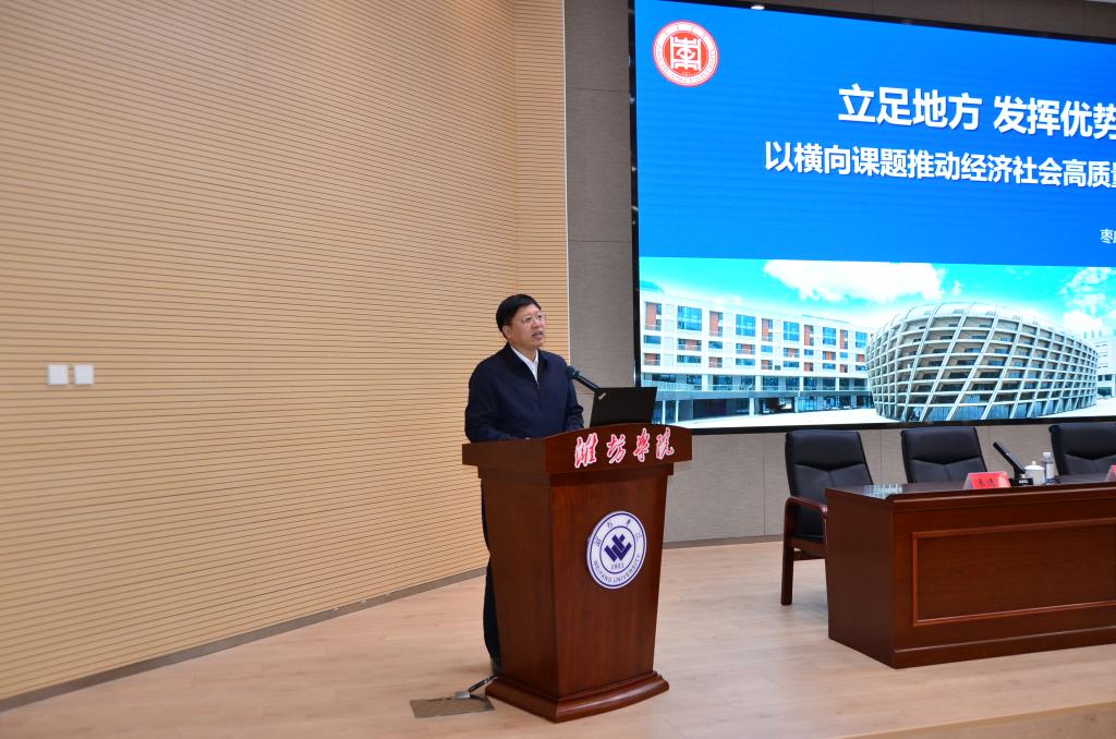 11月7日,全省高校横向课题高质量发展推进活动在潍坊举行。山东省教育厅总督学王浩、科研处处长曾宪文等出席,我校党委委员、副校长李目海参加活动。