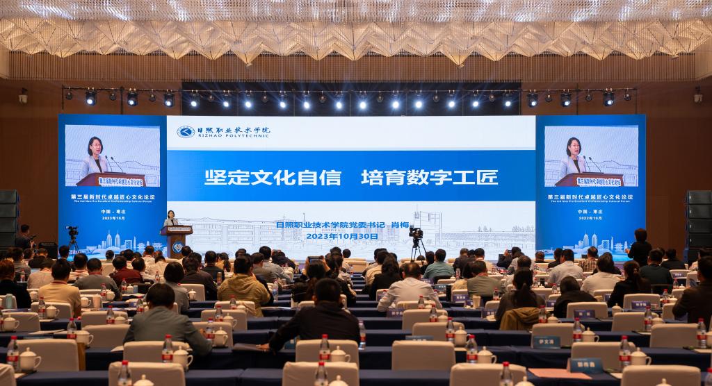 日照职业技术学院党委书记肖梅在题为“坚定文化自信 培育数字工匠”的报告中,分享了对数字工匠的认识理解、培育路径和学校实践三个方面内容。肖梅表示,坚定文化自信,培育数字工匠,是新时代赋予职业教育的新使命,学校将进一步把握新趋势、开辟新赛道、培育新动能,打好培育数字工匠的“组合拳”,为推进产业数字化、数字产业化,建设“数字中国”贡献力量。