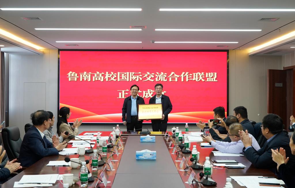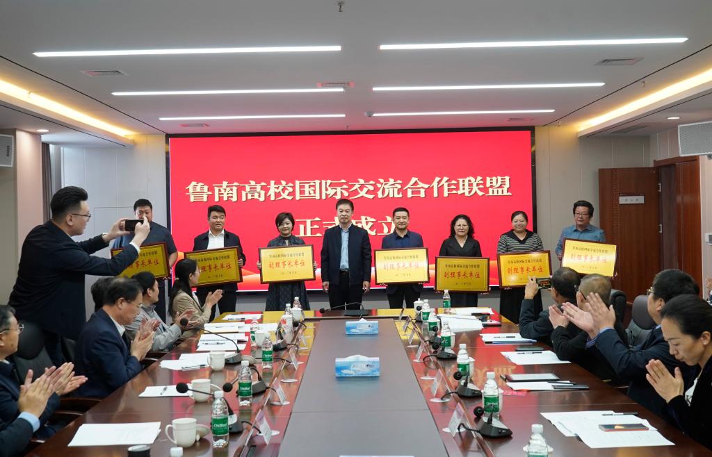 会议审议并通过了《鲁南高校国际交流合作联盟章程》。王夫海、高峰共同为联盟揭牌。王夫海为轮值理事长单位——304am永利集团官网授牌。