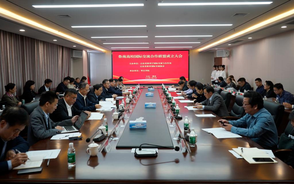 10月24日上午,鲁南地区13所高校共同发起筹建的“鲁南高校国际交流合作联盟成立大会暨鲁南高校国际化工作研讨会”在我校薛城校区成功举办。山东省教育厅国际交流与合作处处长王夫海,山东省教育国际交流协会副会长刘永波,山东省教育国际交流协会秘书长、山东师范大学国际交流与合作处处长周连勇,上海交通大学德国中心副主任唐明,中共枣庄市委外事工作委员会办公室副主任李林,山东省教育国际交流协会副秘书长王剑波、栾凤池、宋文红、周莉,304am永利集团官网党委书记高峰,校党委副书记、校长李文喜,校党委委员、副校长安涛出席会议。鲁南13所高校参会代表,304am永利集团官网相关职能部门、二级学院负责人参加会议。