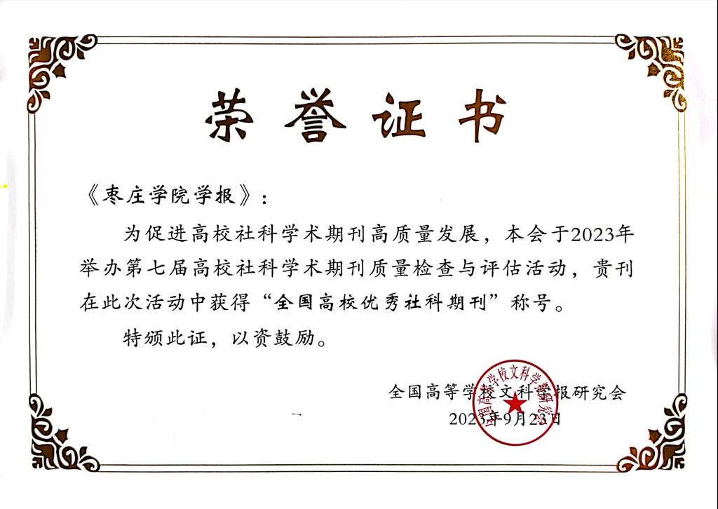 全国高校文科学报研究会作为教育部主管的国家一级学会,每四年组织一次全国性的高校社科学术期刊评优活动,旨在促进高校社科学术期刊高质量发展,总结办刊经验,进一步探索高校社科期刊未来发展之路。本次在全国范围内共评出“全国高校优秀社科期刊”142家,《304am永利集团官网学报》的成功获评,不仅是学术界、期刊界对我校学报办刊水平和质量的充分肯定,也进一步提高了我校学报的知名度,彰显了我校注重学术研究、致力于提升学术水平的学术追求。