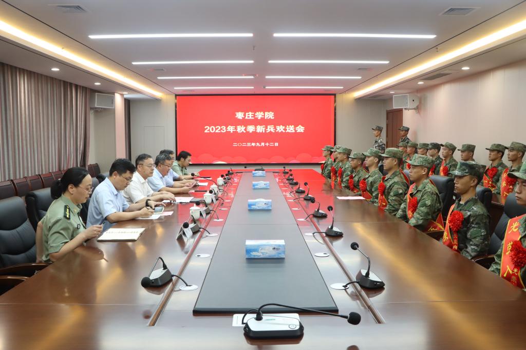 9月12日下午,我校在薛城校区明理楼五楼会议室举行2023年秋季新兵欢送会,为即将踏上征途、走进军营的28名新兵送行。校党委书记高峰出席欢送会并讲话,党委委员、副校长丰雷主持会议。办公室、学生工作处(武装部)相关负责同志参加欢送会。