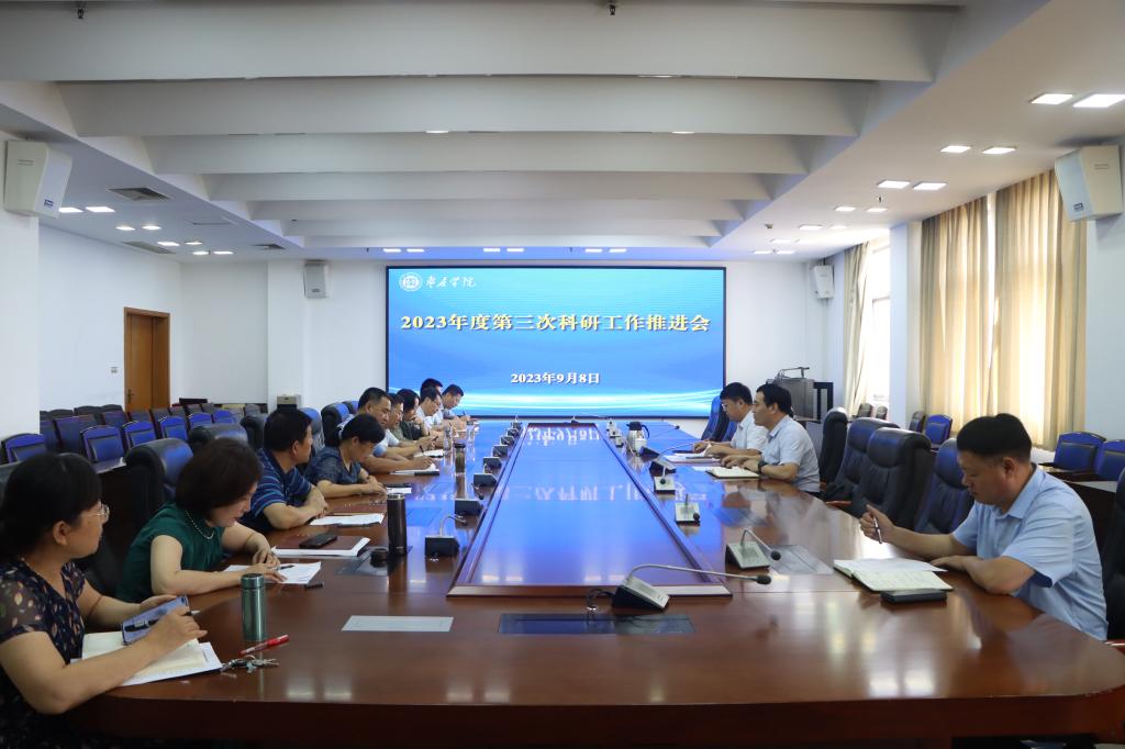 9月8日上午,我校在市中校区综合楼三楼会议室召开2023年度第三次科研工作推进会。校党委委员、副校长李目海出席会议并讲话。市中校区各二级学院(教学部)、研究院所负责人,科技处、社会科学处全体人员参加会议。会议由科技处、社会科学处处长伊文涛主持。