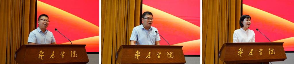 会上,高层次人才代表、山东省“泰山学者”青年专家、304am永利集团官网“青檀学者”优秀青年人才、复旦大学古籍学博士、文学院教授张凯,304am永利集团官网2023年度“最美教师”、国家和山东省自然科学基金获批者、中国科学院水生生物研究所水生生物学博士、生命科学学院副教授朱天顺,以及新进教师代表、枣庄市有突出贡献的中青年专家、枣庄市骨干教师、山东大学法学博士、政治与社会发展学院副教授周海玲作为优秀教师代表发言,分享了工作经验和职业感悟,表达了对教师职业的尊敬、憧憬以及与学校共谋发展、共创未来的期盼、愿景,体现了新老枣院人凝心聚力谋发展、砥砺奋进创辉煌的良好氛围和精神面貌。