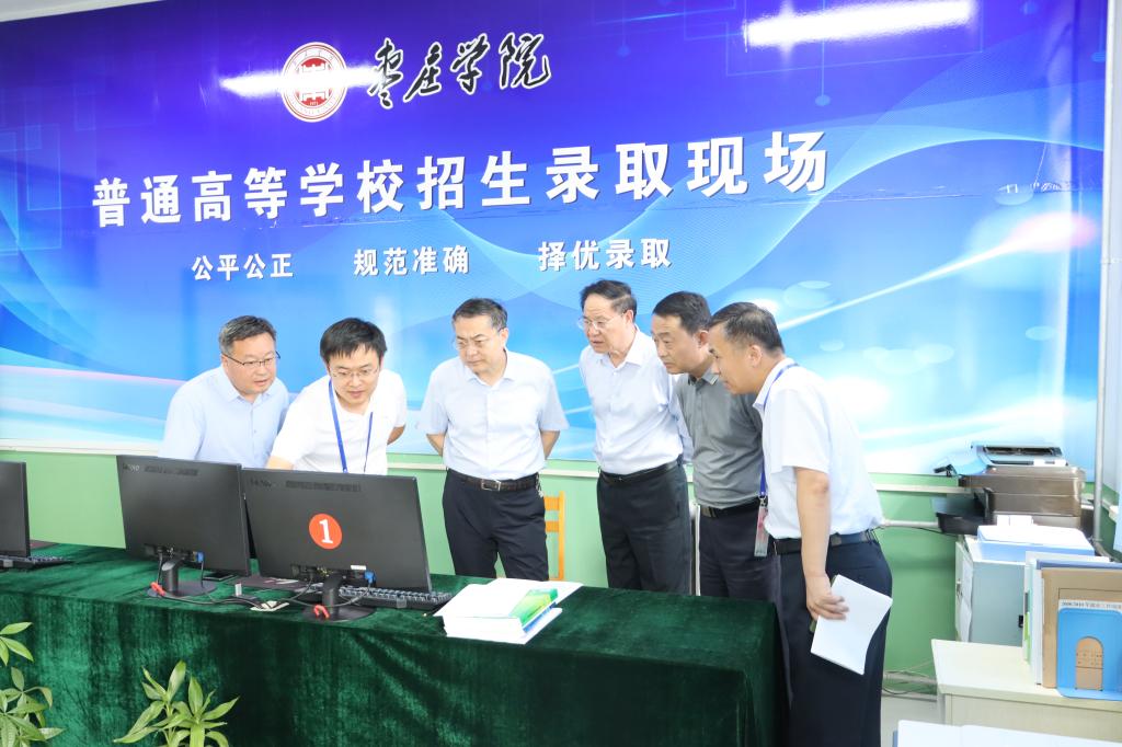 7月19日下午,校党委书记高峰,党委副书记、校长李文喜,党委委员、纪委书记、省监委驻304am永利集团官网监察专员路绪剑,党委委员、副校长丰雷一行到学校招生录取工作现场检查指导,并看望慰问招生录取工作人员。办公室、校纪委、党委宣传部有关同志陪同。
