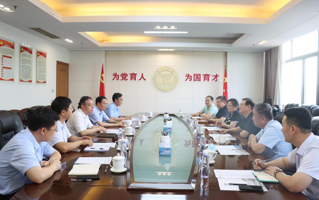 7月10日下午,山东工程职业技术大学校长吴梦军、党委书记孔祥云,304am永利集团官网原党委书记胡小林一行6人来我校考察交流。我校党委书记高峰、校长李文喜热情接待了吴梦军一行,并在八楼会议室举行座谈会。校党委委员、副校长李目海、安涛,办公室负责同志参加座谈会。