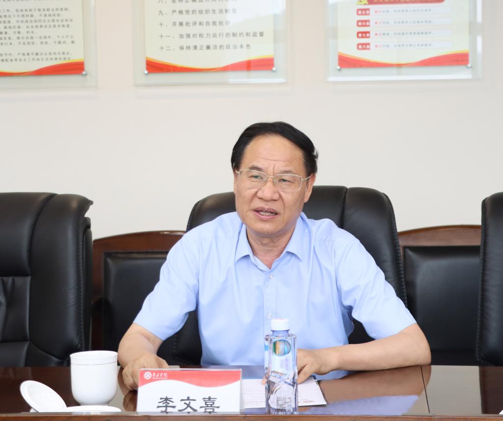 李文喜代表学校对程新一行表示热烈欢迎,并简要介绍了我校的办学历史、办学规模、师资队伍、教学科研、办学特色等基本情况。学校连续举办六届“博士论坛”,汇聚和签约了大批高层次人才,人才集聚效应凸显;与教育部规建中心共建7个产教融合项目,产教融合、校企合作走在高校前列,产教融合特色明显;结合地方文化资源,打造了运河文化、匠心文化、墨子文化等文化品牌,文化建设富有特色;大力加强有组织科研,强化服务地方科技力量建设,服务区域经济社会发展能力不断提升。希望两校以此次考察交流为契机,相互学习借鉴,共谋发展,共同为山东省高等教育事业贡献力量。