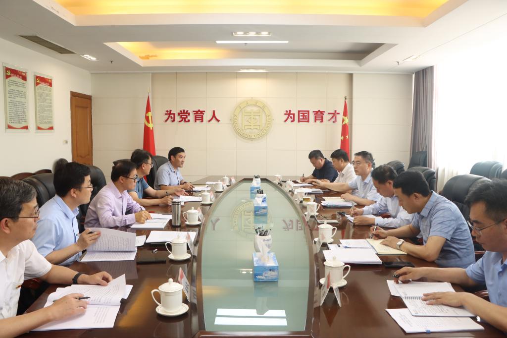 6月26日下午,我校在综合楼八楼会议室召开党的建设和全面从严治党工作领导小组会议。校党委书记、党的建设和全面从严治党工作领导小组组长高峰主持会议并讲话,校领导李文喜、李目海、路绪剑、丰雷、安涛、张昌林、林勇出席会议。办公室、组织部、学生工作处、保卫处负责人参加会议。
