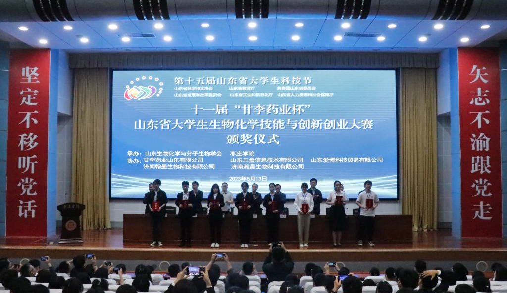 5月13日,第十五届山东省大学生科技节——第十一届“甘李药业杯”山东省大学生生物化学技能与创新创业大赛决赛在我校举行。山东生物化学与分子生物学会副理事长王林、山东生物化学与分子生物学会专职副秘书长王世立,校党委委员、副校长丰雷,甘李药业人力资源总监刘常军出席大赛开幕式并分别致辞。校党委委员、宣传部部长张昌林出席闭幕式并致辞。学校创新创业学院、食品科学与制药工程学院、生命科学学院党政负责人共同出席。