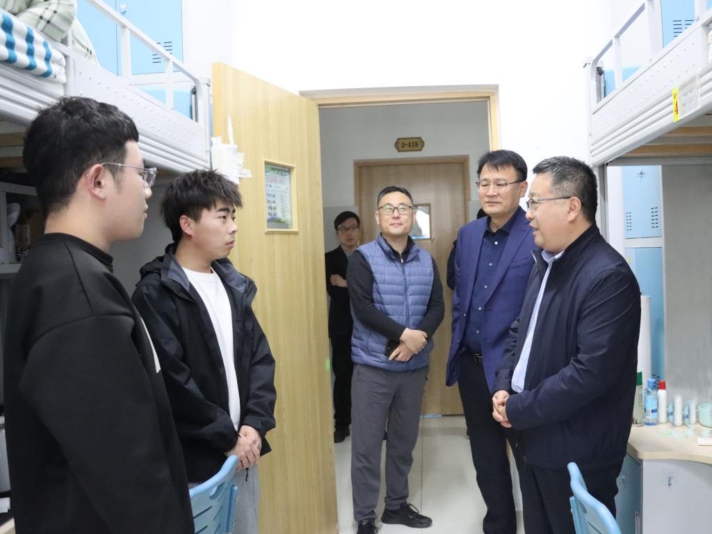 在学生宿舍,丰雷亲切地与学生交谈,询问他们的学习生活情况以及毕业生的就业去向等,叮嘱他们要提高安全防范意识和卫生健康意识,努力营造安全整洁、和谐文明的宿舍环境。