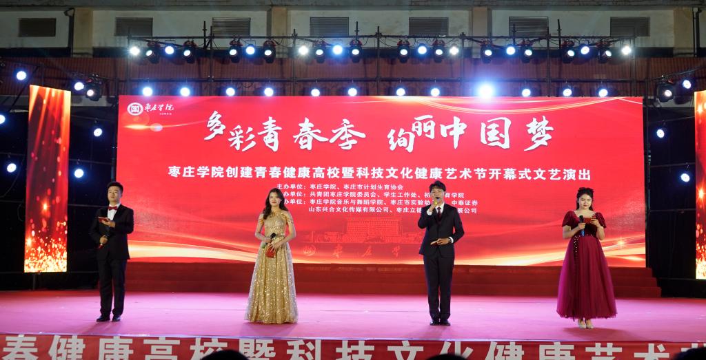4月12日晚,304am永利集团官网“创建青春健康高校”暨科技文化健康艺术节开幕式文艺演出在市中校区青年广场隆重举行。学校党委副书记、校长李文喜,党委委员、副校长丰雷,枣庄市计划生育协会会长罗贤河出席活动。枣庄市实验幼儿园、中泰证券枣庄分公司、山东兴合文化传媒有限公司、枣庄立德树人教育发展公司相关负责人出席活动。学校办公室、团委、学生工作处、音乐与舞蹈学院、初等教育学院等相关负责人员以及1000余名师生参加活动并观看演出。