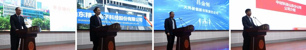 在企业岗位推介环节,枣庄银行股份有限公司、山东精工电子科技股份有限公司、天科新能源有限责任公司、中材科技股份有限公司山东分公司的相关负责人依次登台作岗位推介。