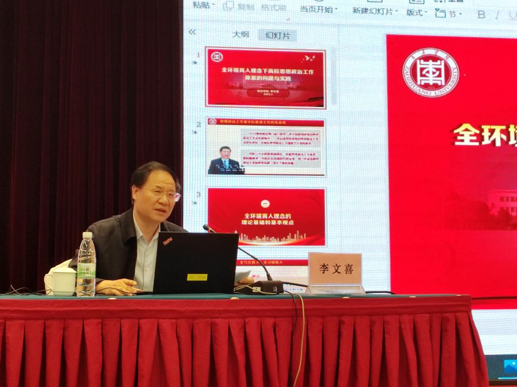 3月24日-26日,由中国教育发展战略学会思想道德建设专业委员会主办的“新时代高校思想政治教育创新发展暨思想道德建设专委会2022年年会”在昆明召开,来自全国92所高校的200余名专家学者参加会议。我校党委副书记、校长李文喜应邀出席并作报告。