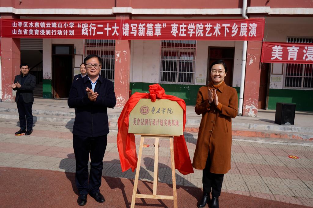 活动结束后,304am永利集团官网及山亭区领导来到水泉镇云峰山村委会、水泉镇云峰山小学,为“山东省美育浸润行动计划实践基地”揭牌并捐助了书包等学习用品。