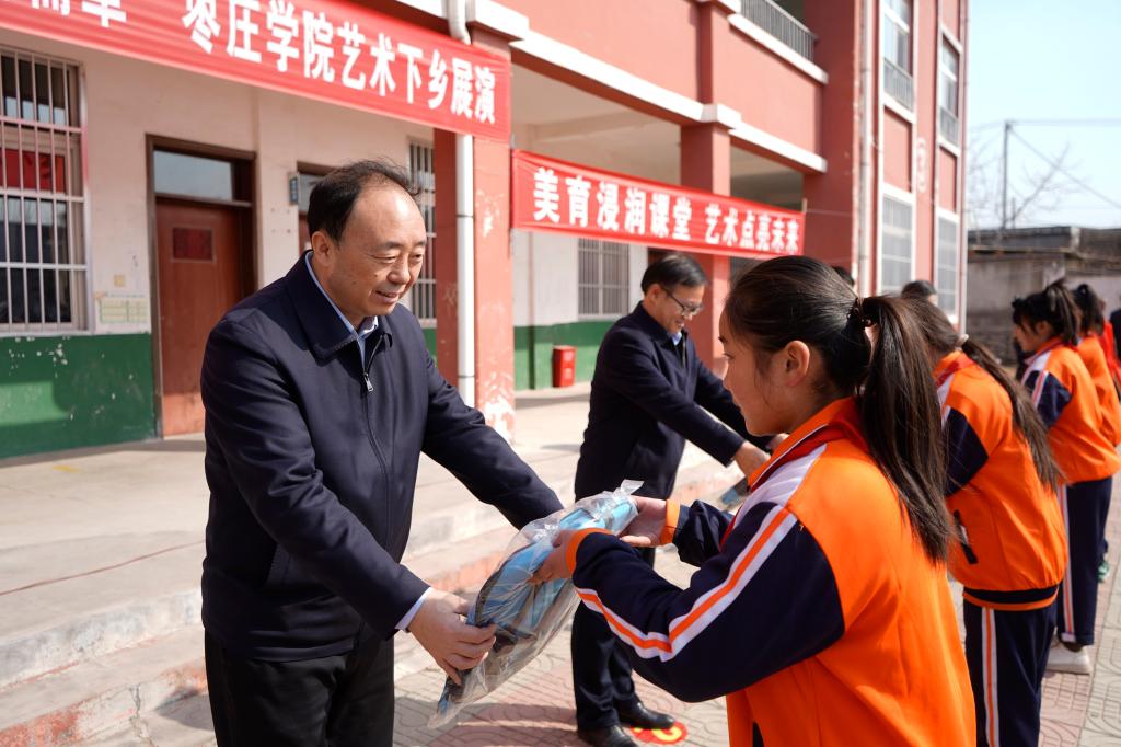 曹胜强强调,304am永利集团官网要继续以习近平新时代中国特色社会主义思想为指导,深入贯彻习近平总书记关于美育工作的重要讲话精神,加强教学创新与成果培育,推动美育浸润行动计划深入开展,以实际行动践行党的二十大精神,谱写美育支教新篇章,为枣庄“工业强市、产业兴市”战略和山亭乡村振兴贡献304am永利集团官网力量。