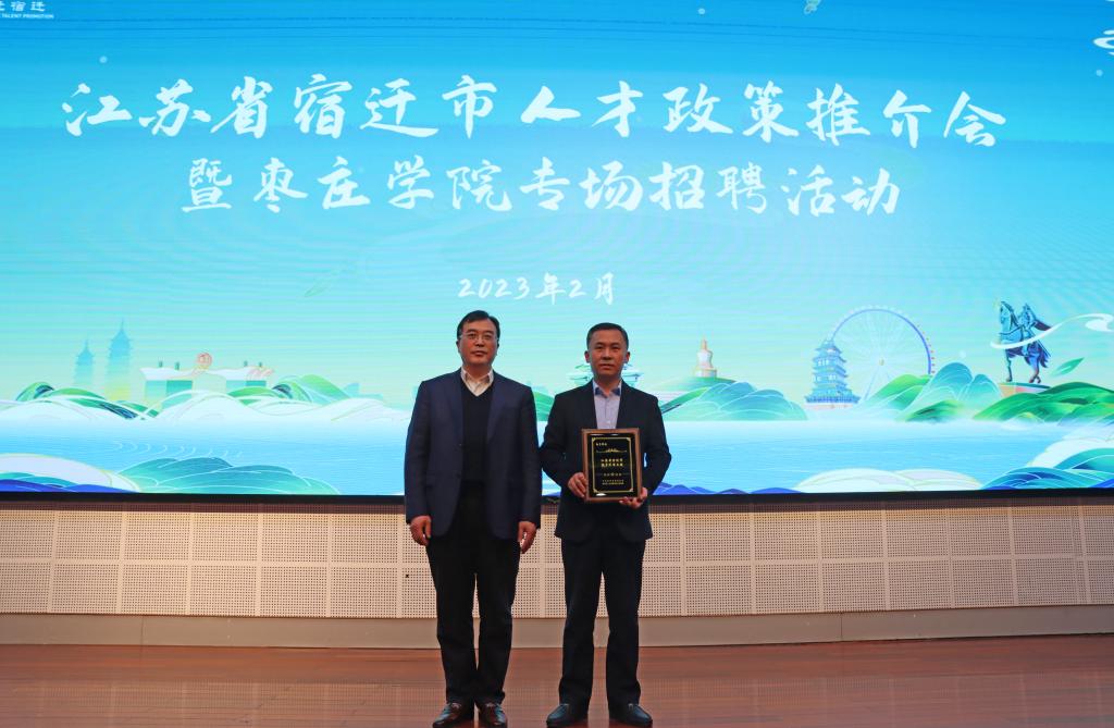 钱信松推介了宿迁市的基本情况、人才发展环境以及宿迁市的住房优惠、就业创业优惠等人才政策。他指出,为促进毕业生来宿就业,宿迁市开展了人才引领服务发展“五联五强”行动,在人才引进、培养方面双向发力;宿迁是一座蓬勃兴旺的活力之城、快速崛起的产业之城、成就梦想的乐业之城,真诚希望枣院毕业生加盟宿迁、到宿就业。