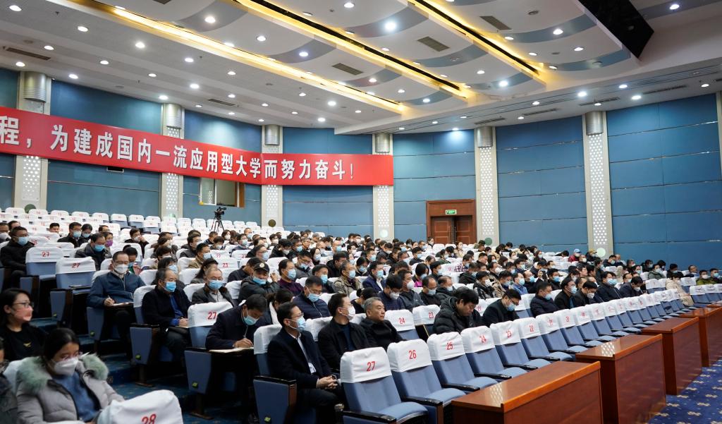 11日上午开班式上,校党委副书记、校长李文喜从八个方面对2022年度工作进行总结。他指出,过去的一年,学校坚持全面从严要求,党的全面领导更加有力;聚焦立德树人根本,人才培养质量稳步提高;突出内涵发展主轴,核心竞争力大幅提升;推进人才强校战略,师资队伍建设成效明显;坚持以学生为中心,管理服务水平更加精细;紧盯地方发展需求,社会服务能力明显增强;纵深推进依法治校,内部治理效能全面提升;着力提升办学条件,服务保障能力不断改善。李文喜强调,2023年是学校“重点工作突破年”,学校当前最大的重点是推进硕士学位授予单位立项建设。各部门各单位要围绕这一主题,敢于担当、积极作为,深入推进学校应用型大学建设、学科学位点建设和“十四五”规划实施。同时,要抓住重点、定好节点、突出亮点,高质量谋划推动新形势下的教育教学改革、应用型人才培养、工程教育探索、高水平科技自立自强、内部效能提升、应用型成果转化、服务地方经济社会发展等任务,凝心聚力推动学校事业高质量发展。