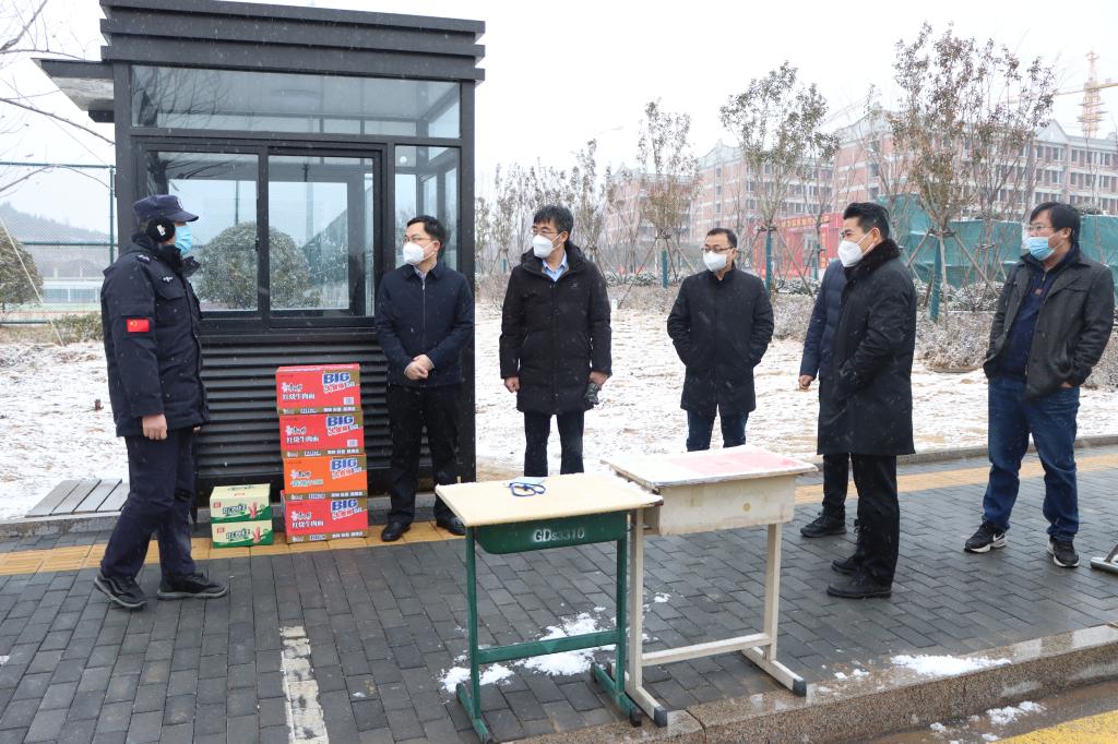 值2023年新春佳节来临之际,1月14日上午,校领导曾宪明、李目海、安涛在办公室、团委、工会、学生工作处、后勤服务处、保卫处、国际教育学院、新城校区管委会等相关职能部门负责人陪同下,深入市中校区和薛城校区,看望慰问假期依然坚守岗位的教职工和在校留学生,为他们送去慰问品并致以节日的诚挚问候和新春的美好祝愿。