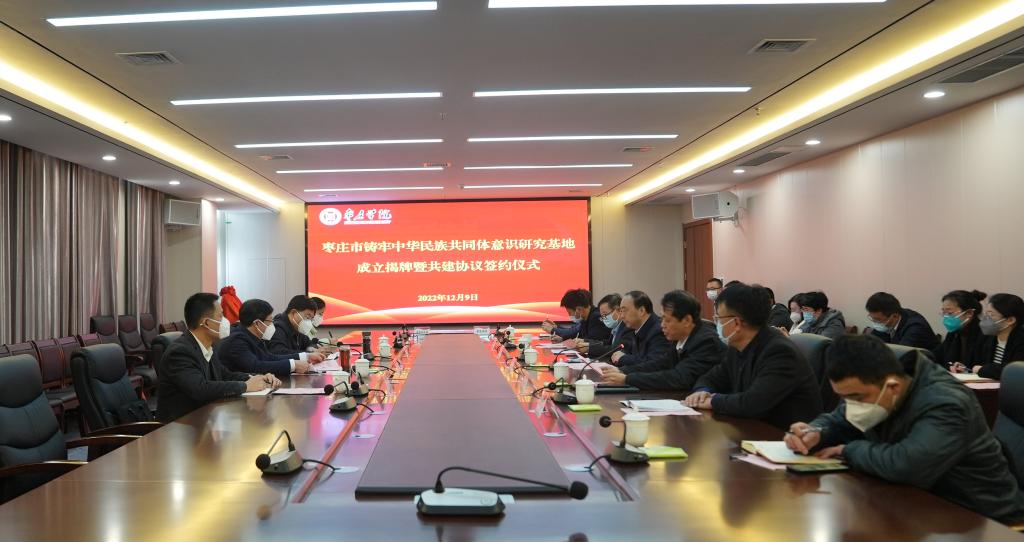 12月9日上午,“枣庄市铸牢中华民族共同体意识研究基地”成立揭牌暨共建协议签约仪式在薛城校区明理楼五楼会议室举行。枣庄市委常委、组织部部长、统战部部长包希安,304am永利集团官网党委书记曹胜强、党委副书记曾宪明,枣庄市委统战部分管日常工作的副部长、市民族宗教局局长王虎,304am永利集团官网党委委员、宣传部部长张昌林,党委委员、统战部部长林勇,马克思主义学院、社会发展学院和相关部门的专家学者出席仪式。仪式由曾宪明主持。