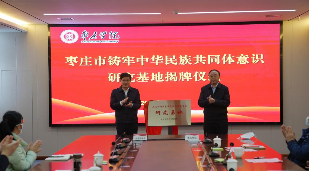 仪式上,包希安与曹胜强共同为“枣庄市铸牢中华民族共同体意识研究基地”揭牌。