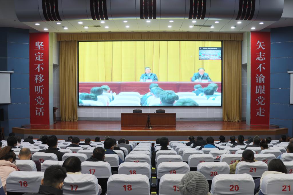 12月4日上午,枣庄市委书记、市人大常委会主任陈平莅临薛城校区,为我校师生作党的二十大精神宣讲报告。校党委书记曹胜强主持报告会。枣庄市委常委、秘书长赵刚,校领导李文喜、曾宪明、李目海、丰雷、安涛、张昌林、林勇,市委办公室第一党支部全体党员,以及我校薛城校区处科级干部以及师生代表在崇德楼报告厅聆听报告。市中校区在综合楼报告厅、各二级学院设分会场,处级干部以及师生代表以视频直播形式收听收看。