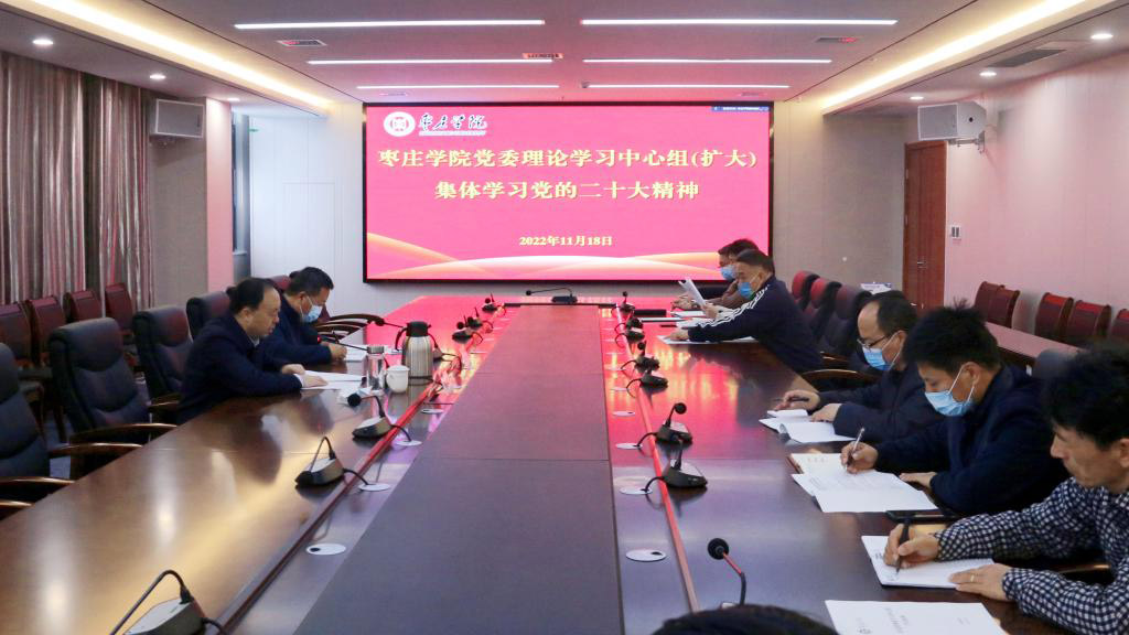 11月18日上午,学校党委在薛城校区明理楼五楼会议室、市中校区综合楼八楼会议室以视频形式召开理论学习中心组(扩大)集体学习会议,集体学习研讨党的二十大报告关于“实施科教兴国战略,强化现代化建设人才支撑”重要论述。校党委书记曹胜强主持学习并讲话。校领导李文喜、曾宪明、李目海、路绪剑、丰雷、安涛、张昌林,纪委(监察专员办公室)、办公室、人事处、教务处、科技处及部分学院负责人参加学习。