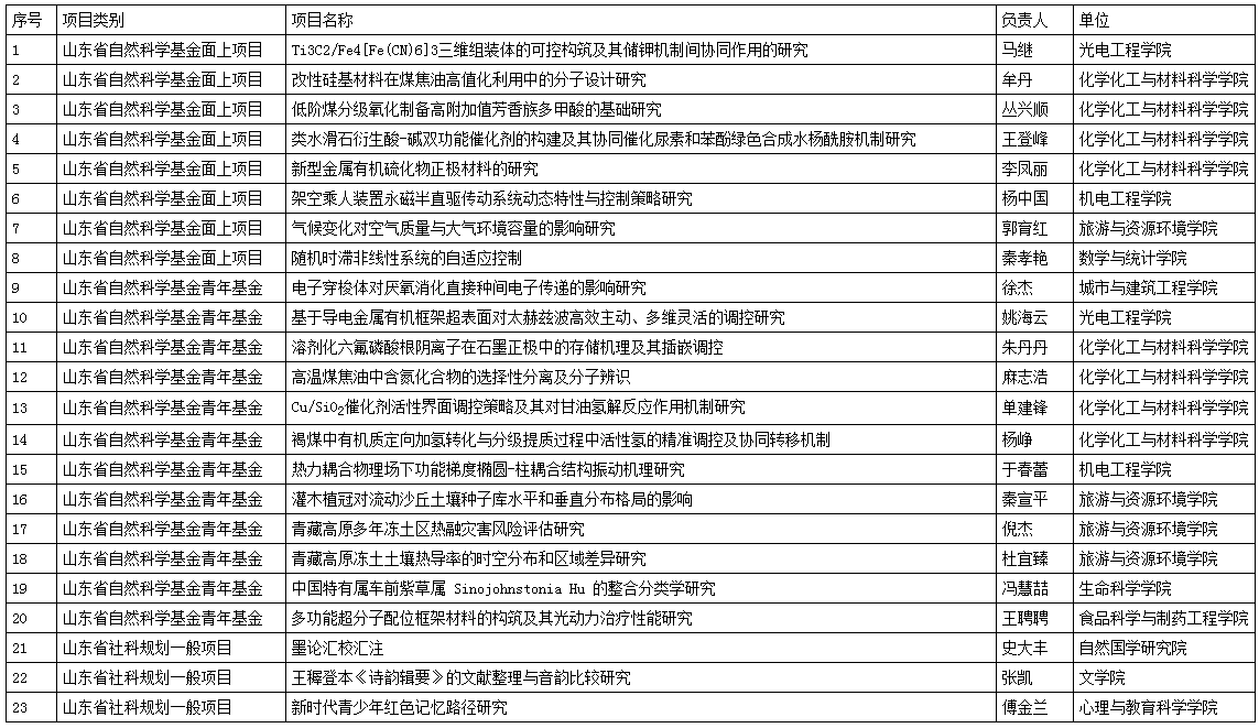 今年是学校“十四五”规划实施第二年,也是硕士点立项建设的关键一年。山东省自然科学基金项目、山东省社会科学规划项目分别是我省自然科学、人文社科基础性研究领域层次最高、权威性最强、影响力最广的科研基金项目。一直以来,学校高度重视科研工作,不断完善科研管理体制,培育重大科研项目,打造科研创新平台。成绩的取得充分体现了我校重视科研、加强科研人才队伍建设的理念和实践成果,标志着我校科研工作迈上新台阶。