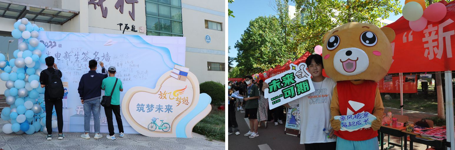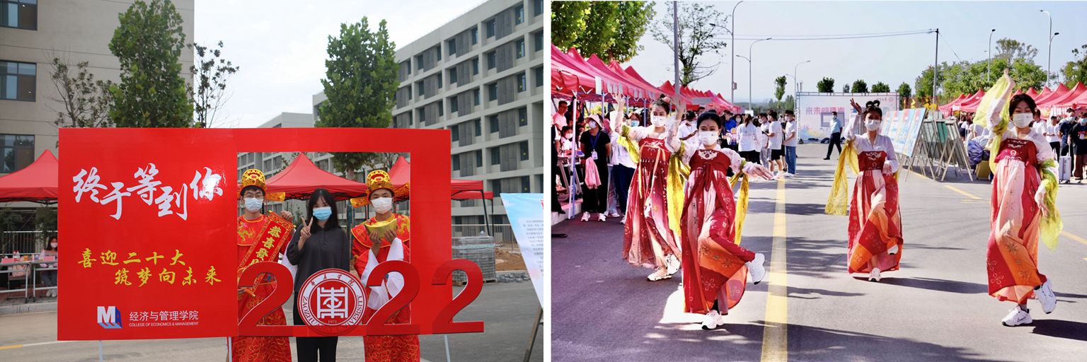 花式迎新,温暖走心。校园文化氛围营造是今年迎新工作的一抹亮色。各部门、二级学院发挥专长,以学生喜闻乐见的形式,创新性开展迎新工作,精心制作了各类文化墙、合影板、签名展板供大家签名、拍照留念,给新同学带来大学生活美好“初体验”。同时,将理想信念教育、爱国主义教育、爱校荣校教育融入迎新环节,各类有思想、有深度、有创意的宣传栏、展板、条幅、文创产品在校园随处可见,将校园妆点出浓浓的迎新仪式感,也让新生一进入大门就感受到学校深厚的历史底蕴和浓郁的文化氛围。迎新现场还发放了爱心大礼包、防疫大礼包,体现了学校对每一位新生的真切关怀和美好祝愿。