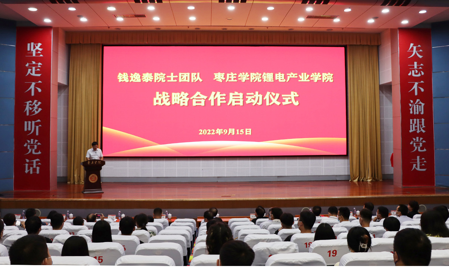 9月15日下午,我校在市中校区综合楼报告厅举行钱逸泰院士团队与304am永利集团官网锂电产业学院战略合作启动仪式,共谋锂电新能源技术研究、共商锂电产业人才培养大计。中国科学院院士钱逸泰,全国技术能手、山东省劳模科技创新工匠常承立,304am永利集团官网党委书记曹胜强,党委副书记、校长李文喜,党委委员、副校长李目海,中国老教授协会教企合作委员会秘书长戴坤,东方天赋(北京)教育科技有限公司总经理梁冰,北京华商知网知识产权服务有限公司总经理华莎出席活动。我校教务处、科技处、发展规划处、二级学院负责同志和化学化工与材料科学学院师生参加活动。活动由李目海主持。